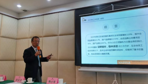 韓總發(fā)言主要包括三個模塊的內(nèi)容:一,首先總結(jié)了2019年各體系的工作;二,緊接著明確提出2020年公司總基調(diào)定位為“革新·進(jìn)取”,對2020年市場環(huán)境作出判斷,提出了總的工作方針、各體系的重點工作以及RT預(yù)算目標(biāo);三,最后給大家深入講述了企業(yè)文化,要求全體美鵬人肩負(fù)“共創(chuàng)美好家國”的使命,牢記公司的核心價值“客戶第一、誠信為本、質(zhì)樸奮斗、崇尚做到”,秉承公司“熱情、認(rèn)真、專業(yè)、高效”的工作作風(fēng),按美鵬工作三要求辦事“用心做事,達(dá)成目標(biāo);按規(guī)定做事,服從領(lǐng)導(dǎo);同事間不計較,溝通、包容、支持”,共同努力實現(xiàn)“致力成為華南地區(qū)最優(yōu)秀的工程設(shè)備及工程設(shè)備使用方案的提供商”的愿景!